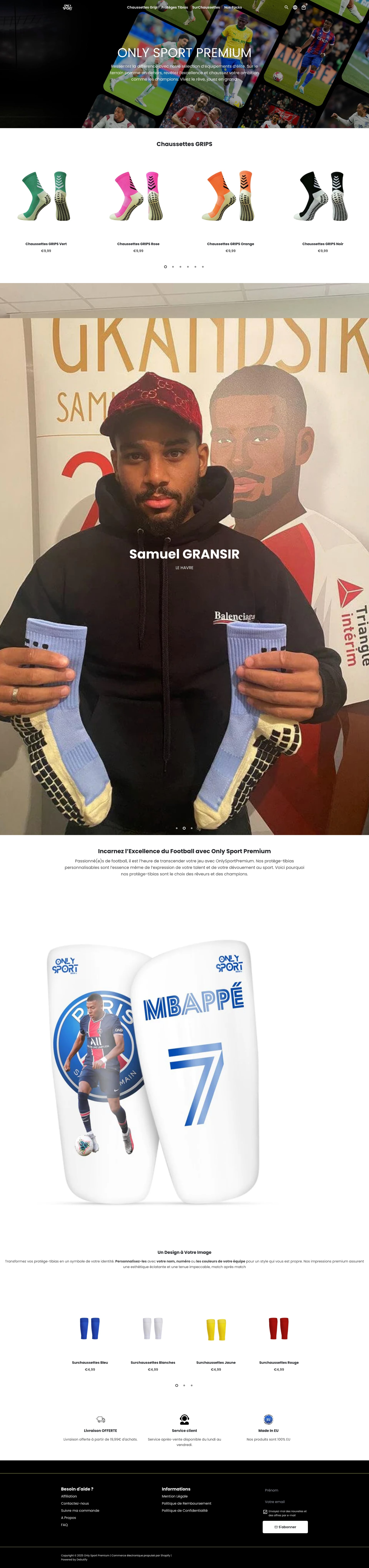 Refonte de la boutique Shopify « Only Sport Premium », spécialisée dans la vente d’équipements de football